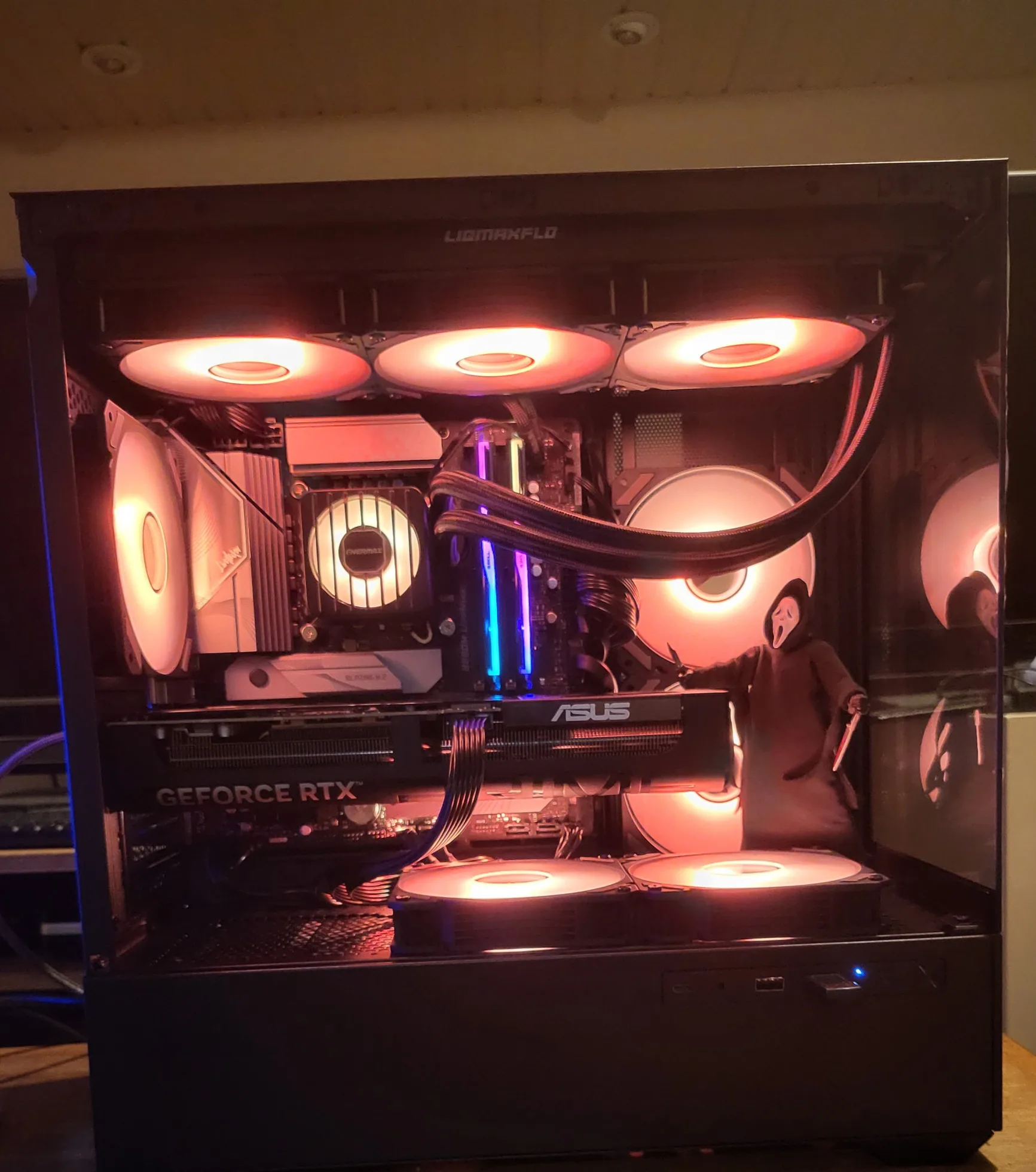 Goed gekoeld met Waterkoeling  van Enermax LIQMAXFLO SR 360mm en acht fans van Sharkoon Mirror 120 ARGB.